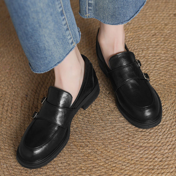 COMFORTABLE ROUND TOE CHUNKY HEEL LOAFERS